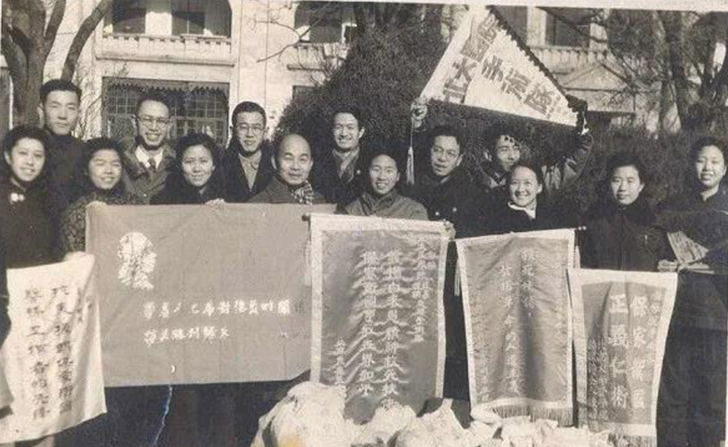 1950年抗美援朝医疗队出发前在北大医院石头楼前合影