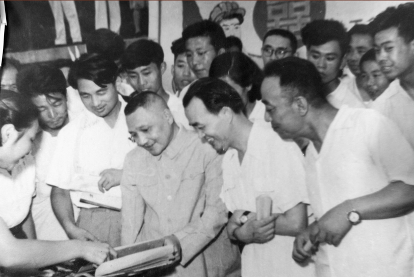 1958年,邓小平、杨尚昆参观北京医学院教育革新成果