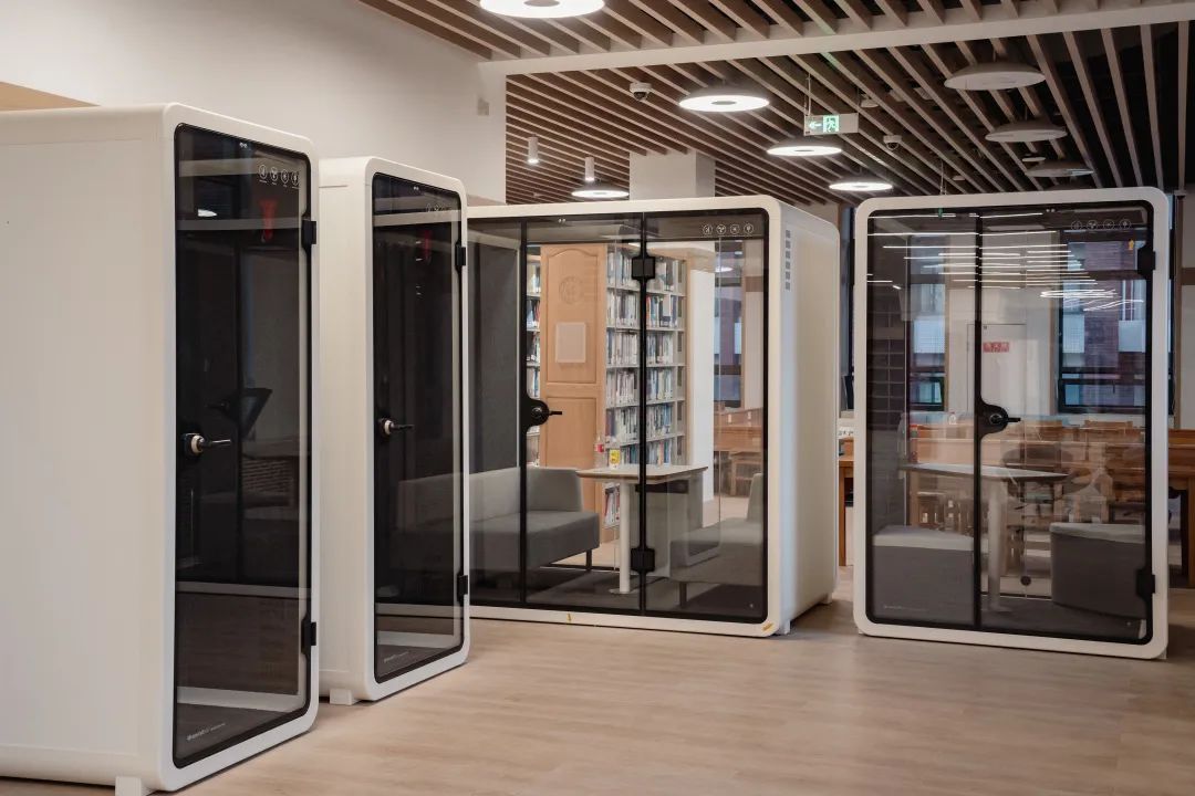 馆内设有电子瀑布流、朗读亭、静音仓等提升阅读品质的设备设施,为读者提供更高效高质的阅读体验和学习空间。