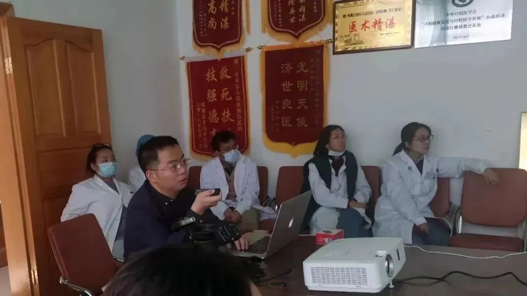 经过实地调研,他发现西藏地区的口腔健康问题尤为严重——口腔疾病发病率高,诊治率较低,大量缺牙的患者得不到及时修复治疗。造成这些问题的一个重要原因是口腔保健意识淡漠,“牙疼不是病”的观念根深蒂固。因此,进藏后不久的全国爱牙日,陈立从口腔卫生宣教做起。受疫情影响,无法现场开展传统口腔科普教育,陈立就采取腾讯会议+直播的形式,设计了口腔宣教的云课堂。