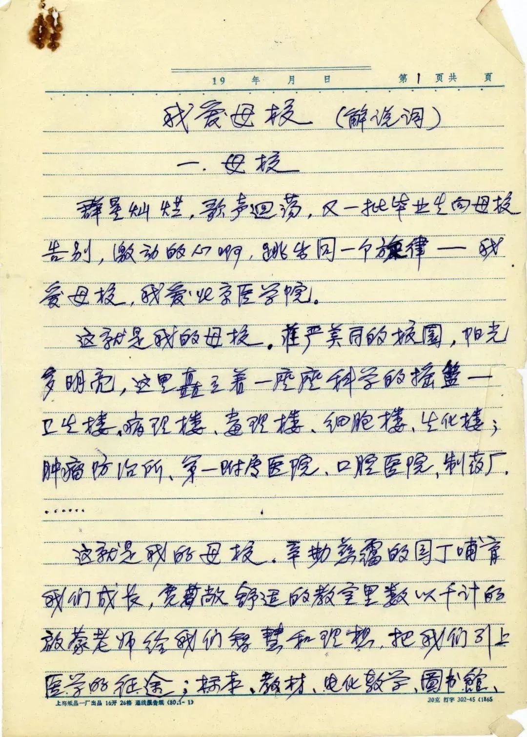 北京医学院1982年建校七十周年晚会节目《我爱母校》