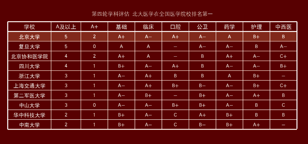 北大医学六大一级学科入围首轮国家“双一流”建设名单,第四轮学科评估领跑全国医学院校。