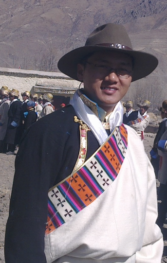 身着藏服的拉巴桑珠