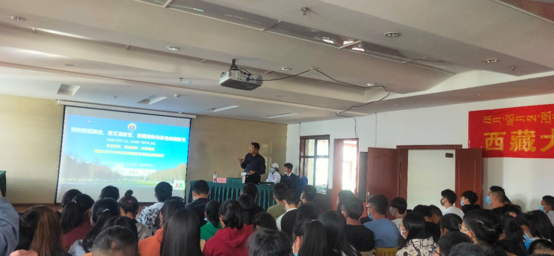 拉巴桑珠给财经学院新生开展防疫防艾防结核专题讲座