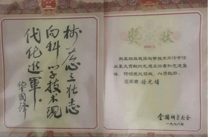 徐光炜因其在创建北大医院肿瘤科和北京市肿瘤防治研究所等工作中的突出贡献,被授予全国科学大会“先进工作者”称号,时年44岁。