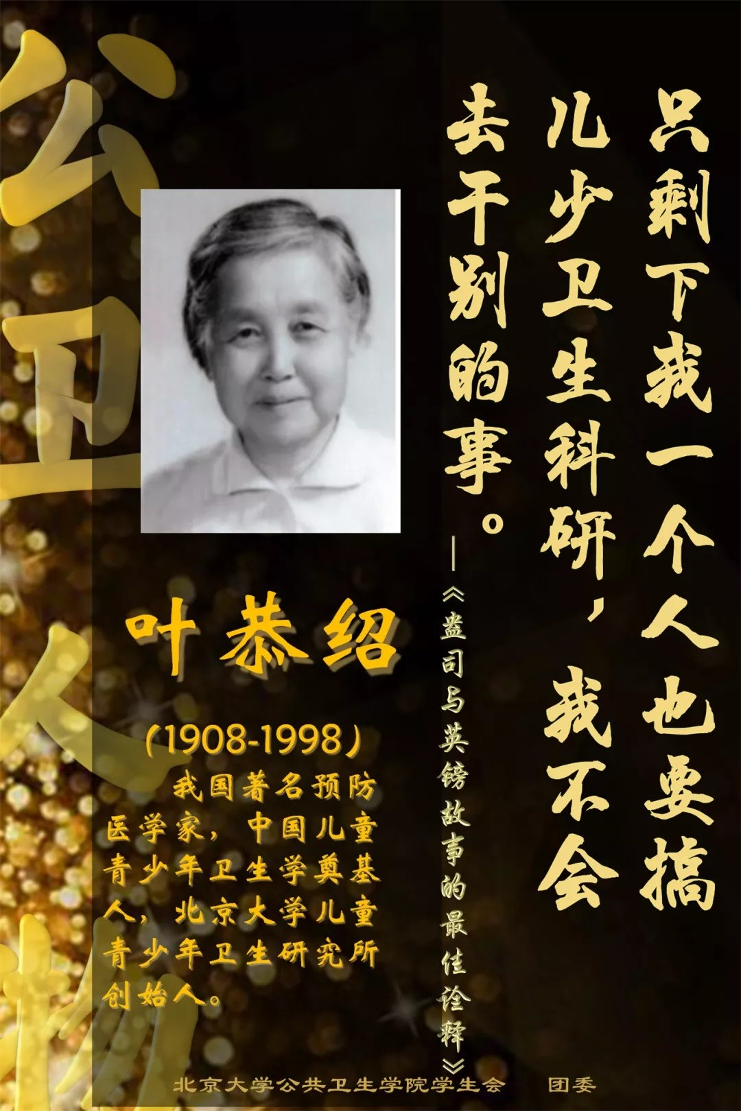 叶恭绍的一生,历尽艰难与坎坷,千帆过尽之后, 她将一颗赤子之心奉献给儿少卫生事业,真正地做到 了鞠躬尽瘁,死而后已。