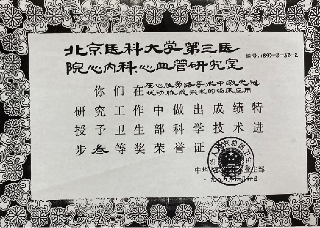 除了临床手术,陈明哲教授团队还做基础研究。1988年3月聘请在国外已学有所成的韩启德教授、王宪博士加盟心内科,开创了我国心血管领域临床与基础研究相结合的先河。通过研究发现最初使用的YG激光,属于热造影,对血管损伤较大,容易再狭窄,随后变更改为准分子激光。同时自主研发光纤前端探测头,使其更光滑,减少冠脉损伤。陈明哲教授和他的团队不断创新,改进操作技术,见证了我国激光冠脉血管治疗技术发展。