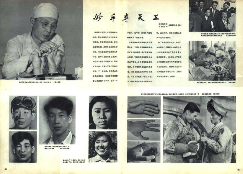 1957 年《人民画报》以“妙手夺天工”为题目, 对朱洪荫及北京医学院成形外科进行报道