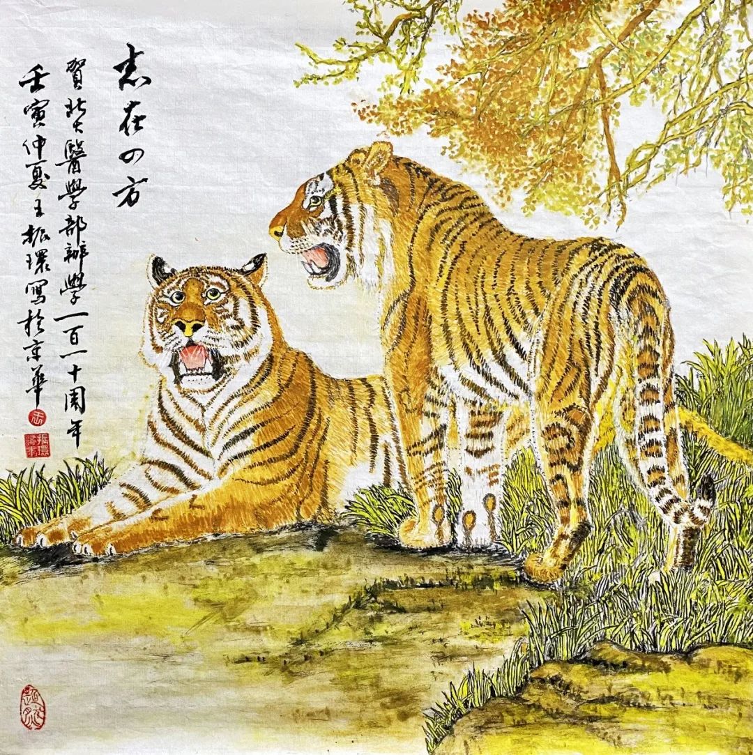 今年是壬寅年,是北大医学办学110周年,画虎表示祝贺。愿学子们在秋季毕业后奔向四方,大显神威,医学技术和科研双丰收,如虎添翼,虎虎生威。