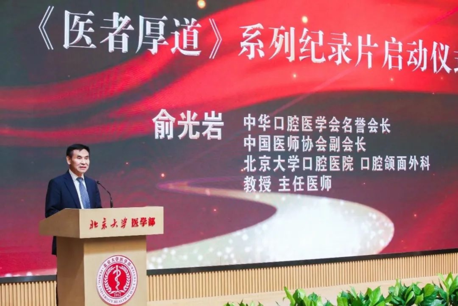 纪录片医师代表口腔医院俞光岩教授、肿瘤医院朱军教授与在场青年医师们分享从医感悟和“厚道”情怀。嘉宾们共同上台在大屏幕按下手印,《医者厚道》系列纪录片正式开机。