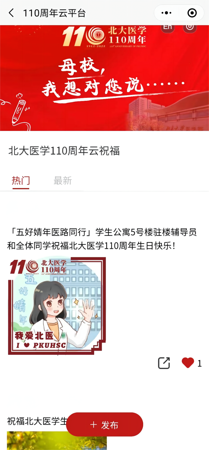 送出对北大医学的文字、图片、视频祝福