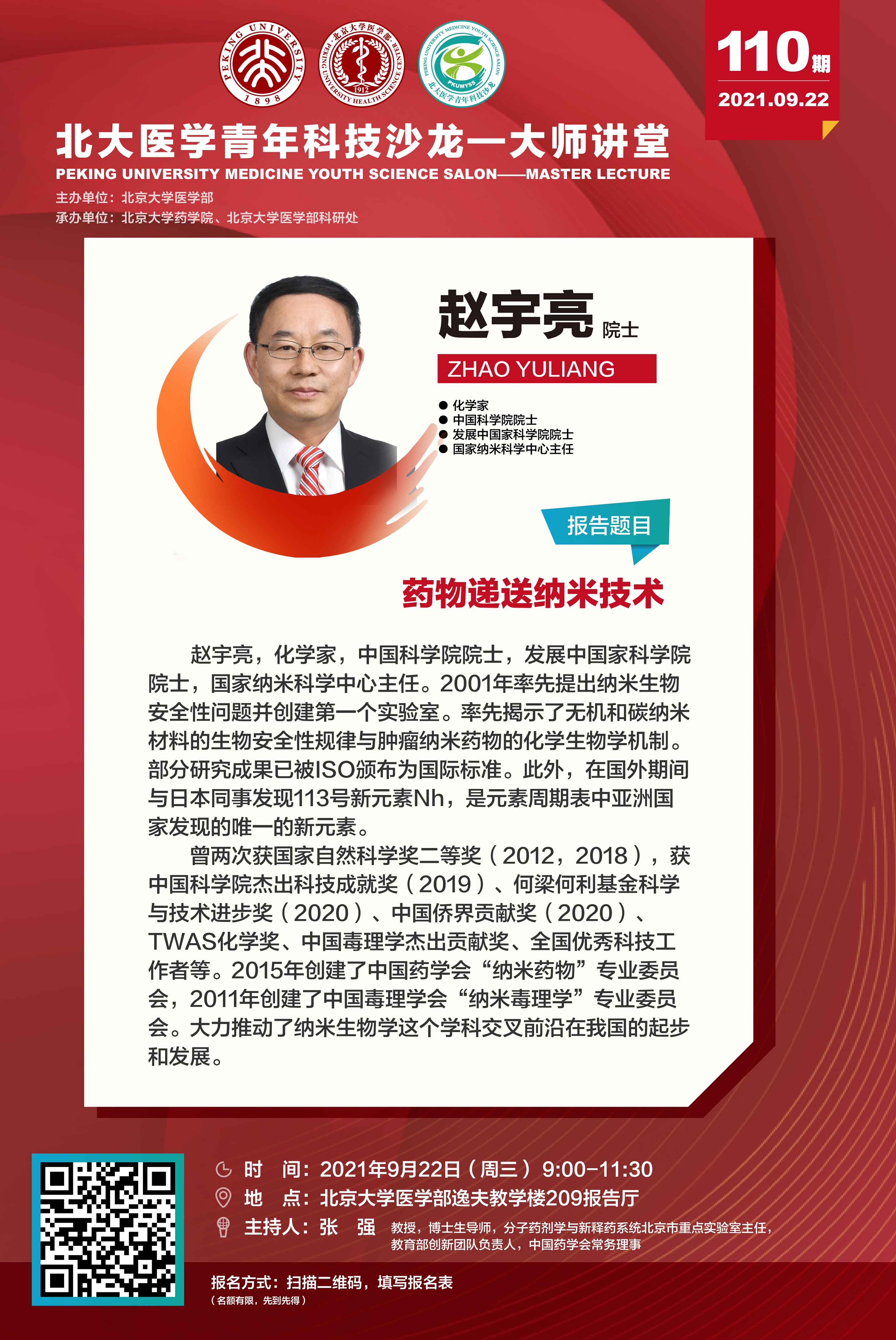 第110期北大医学青年科技沙龙——大师讲堂(9月22日)