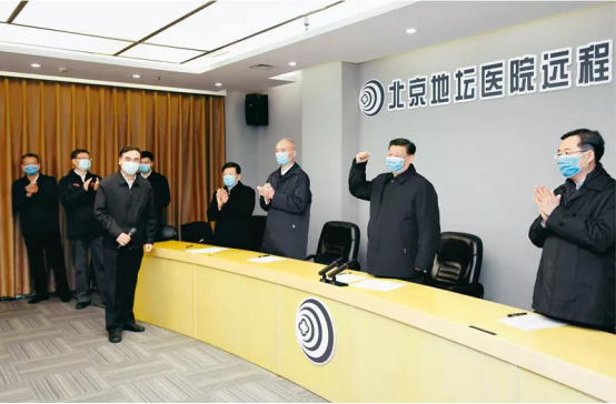 2月10日,中共中央总书记、国家主席、中央军委主席习近平在北京调研指导新冠肺炎疫情防控工作。这是习近平在首都医科大学附属北京地坛医院远程诊疗中心,通过视频连线武汉市收治新冠肺炎患者的金银潭医院、协和医院、火神山医院,了解情况、听取意见和建议,慰问一线医务工作者。新华社记者 鞠鹏 摄
