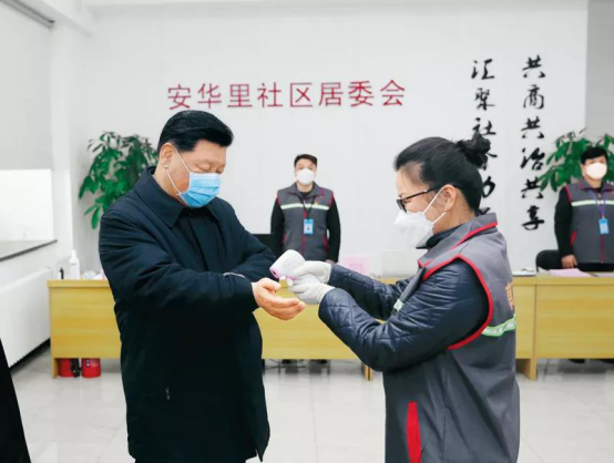 2月10日,中共中央总书记、国家主席、中央军委主席习近平在北京调研指导新冠肺炎疫情防控工作。这是习近平来到朝阳区安贞街道安华里社区,了解基层一线疫情联防联控情况。新华社记者 鞠鹏 摄