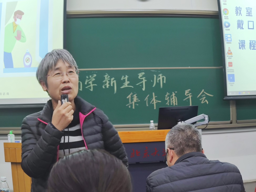 2020年11月6日下午,药学院2020级新生导师集体辅导第二次活动在北京大学二教107教室顺利举行。药学院党委副书记张红梅老师,药事管理与临床药学系史录文老师、谢晓慧老师,药物化学系主任焦宁老师,分子与细胞药理学系卞希玲老师,药剂学系张华老师、周田彦老师,药物化学系刘振明老师,院团委书记徐国旺老师,医学预科办公室杨晓婷老师参加了活动,活动由学办主任邹晓民老师主持。