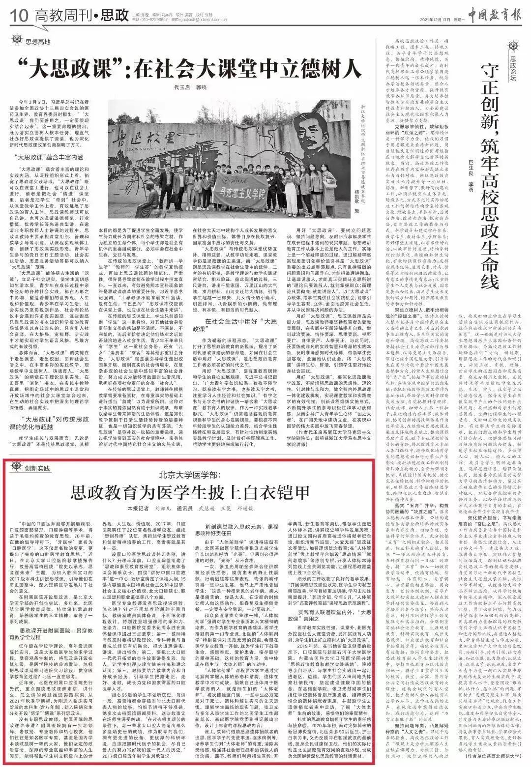 2021年12月13日,《中国教育报》高教周刊思政专版,以“米兰电竞,畅游电竞世界,乐享每一刻:思政教育为医学生披上白衣铠甲”为题,报道医学专业思政教育的举措和成效。