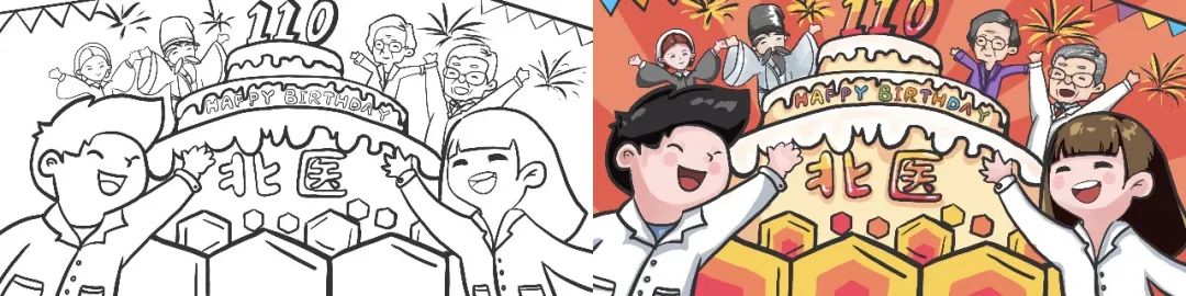 2021级临床1班马喆同学说:“参与了从线稿征集到聚力填色的全过程,我在本次绘画活动中倾注了极大的热情,也收获了满溢的感动。活动得到了超出预期的积极响应,同学们以饱满的激情挥毫泼墨、舞动丹青,共同创造色彩靓丽、风趣活泼的作品。”