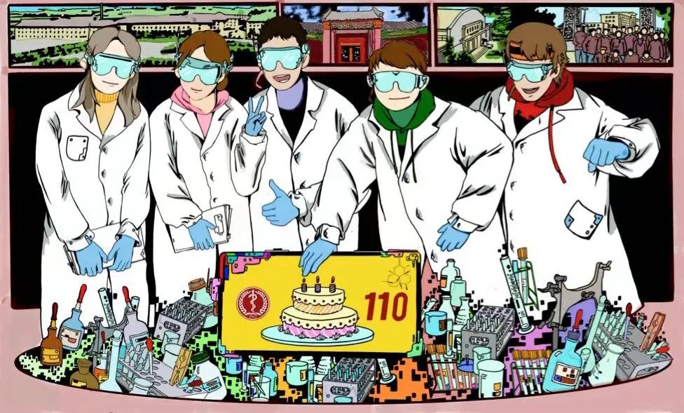 经过层层投票和选拔,2021级药学3班集体绘制的作品“缘起实验室·新药贺百十”脱颖而出,成为此次活动的原画稿之一。