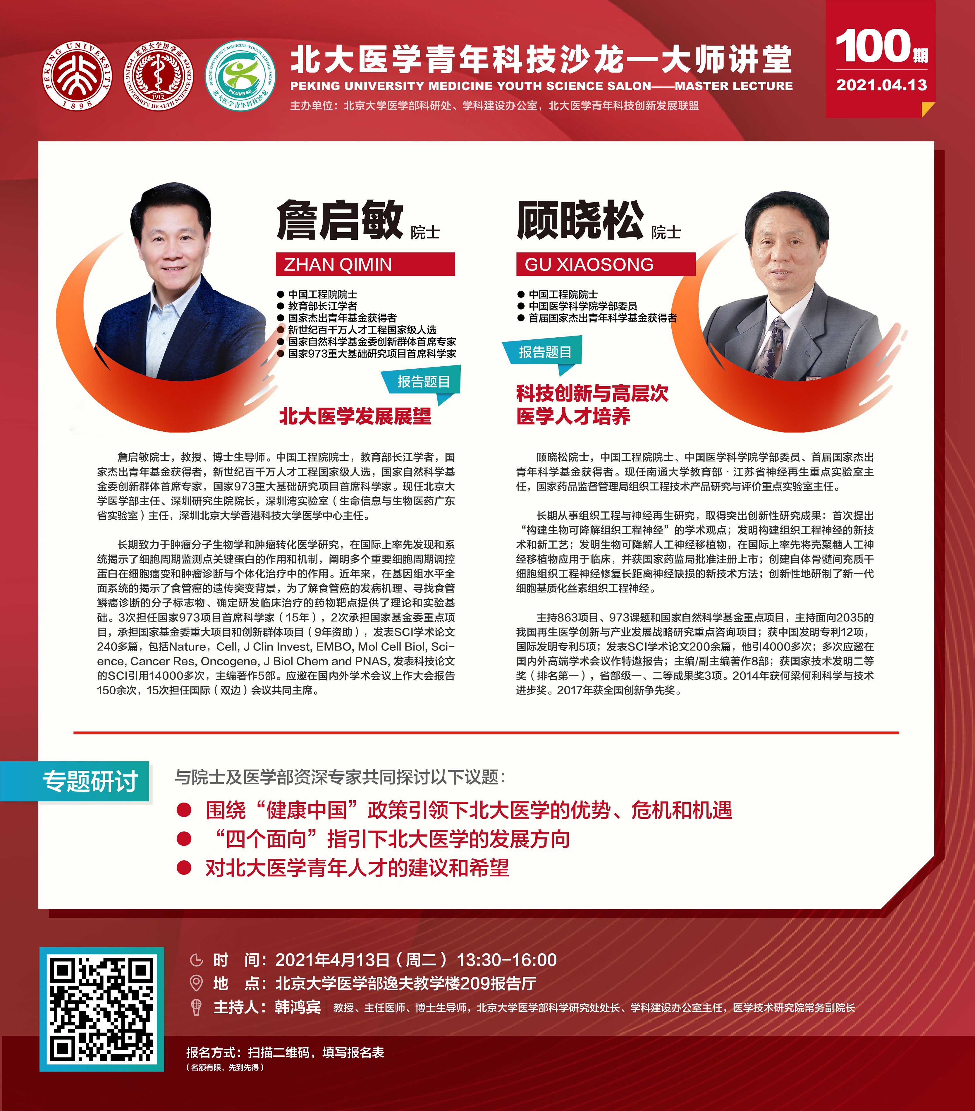 第100期北大医学青年科技沙龙——大师讲堂(4月13日)