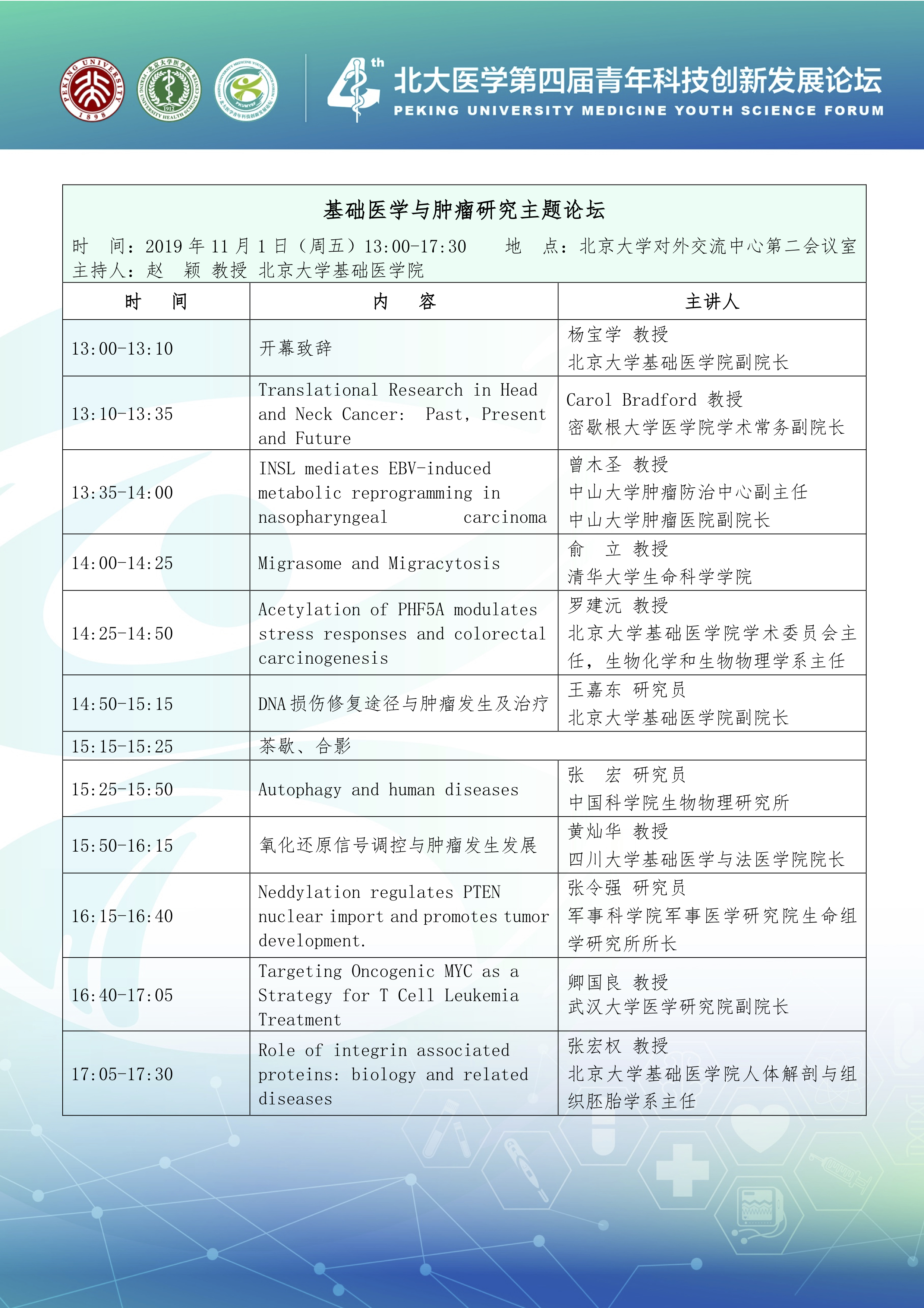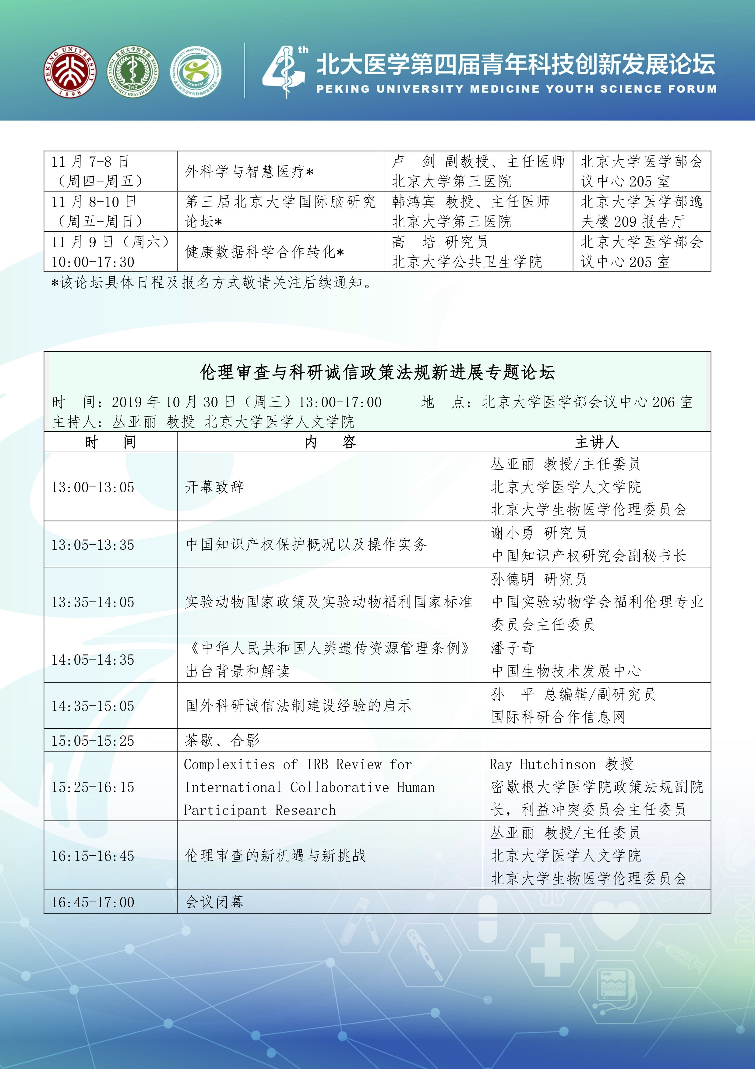 北大医学第四届青年科技创新发展论坛(10月30日-11月10日)