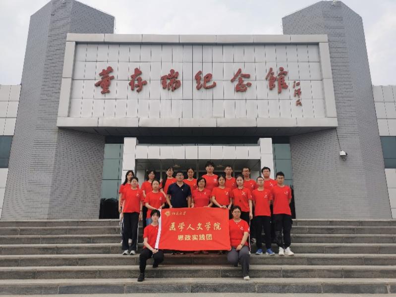 下午,实践团一行来到董存瑞烈士纪念馆。在广场上,面对董存瑞烈士塑像,师生们列队肃立,向烈士敬献花篮,面对团旗重温入团誓词,表达对董存瑞烈士的深切缅怀和无限敬意。在纪念馆内,师生们深入学习了董存瑞烈士的生平经历和先进事迹,感佩于他为革命英勇献身的伟大精神。董存瑞烈士的一生短暂而充实,他在抗日战争和解放战争的烽烟中成长为一名真正的革命战士和共产党员,用自己的行动践行了“为共产主义事业奋斗终生”的誓言,不断激励着全国人民为祖国的社会主义现代化事业和共产主义理想而奋斗。