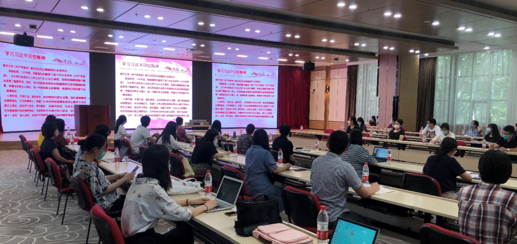 在丁磊的带领下,全体学工系统老师认真学习了习近平总书记6月30日给复旦大学《共产党宣言》展示馆党员志愿服务队全体队员的回信。总书记在回信中写到,心有所信,方能行远,勉励青年学生党员继续讲好关于理想信念的故事,并对全国广大党员特别是青年党员提出殷切希望,希望他们认真学习马克思主义理论,结合学习党史、新中国史、改革开放史、社会主义发展史,在学思践悟中坚定理想信念,在奋发有为中践行初心使命,努力为实现“两个一百年”奋斗目标、实现中华民族伟大复兴的中国梦贡献智慧和力量。总书记的回信体现了他对青年一代的关心,也为高校“为党育人、为国育才”,着力培养堪当民族复兴大任的时代新人指明了方向。