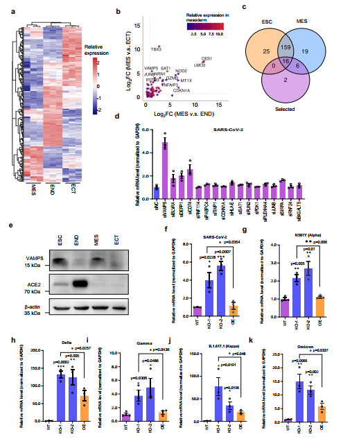 图1.胚胎干细胞内源高表达VAMP5抑制SARS-CoV-2感染。